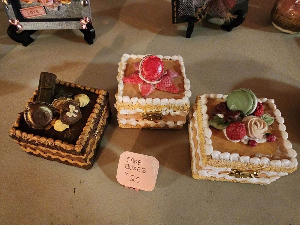Amy and I had an amazing weekend at the Kelowna Christmas Expo. Amy sold nearly all her adorable Christmas ornaments and several worry stones and magnets. She also showed off her ceramics and cake boxes!